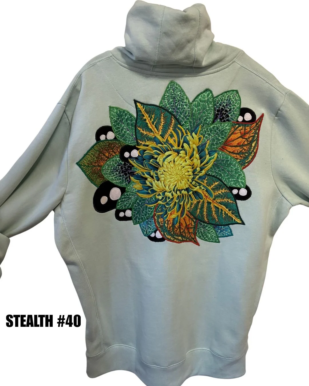 The Frenchy Cannoli Brand Tribe of 108 “Stealth” series celebrates Frenchy’s memory in limited edition one-of-a-kind wearable art hoodies and zip ups. The series intends to pay homage to Frenchy’s love of primordial human history and the hidden nature of trichome heads wherein lies the magic. I know Frenchy would have loved this project. Much appreciation to everyone who has supported the “Stealth” series. It’s intensely joyful to work on each one slowly, meandering through the deep time memories of our shared origins. Ultimately there will be 108 iterations. I’ll keep adding to this page as the works are completed. - Madame Cannoli